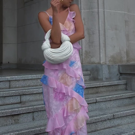 Float through your next event in the Cotton Candy Garden Gown β a whimsical dream woven in layers of pastel pink, lilac, and soft blue. Crafted from delicate sheer floral organza and cascading ruffles, this gown is made to make a statement. The asymmetrical tiered skirt and soft sweetheart neckline flatter every curve while giving ethereal movement with every step.